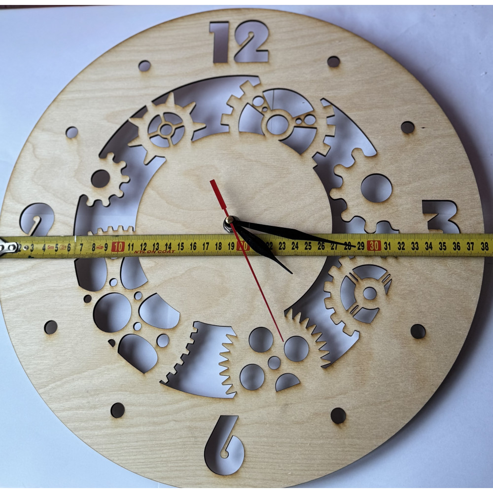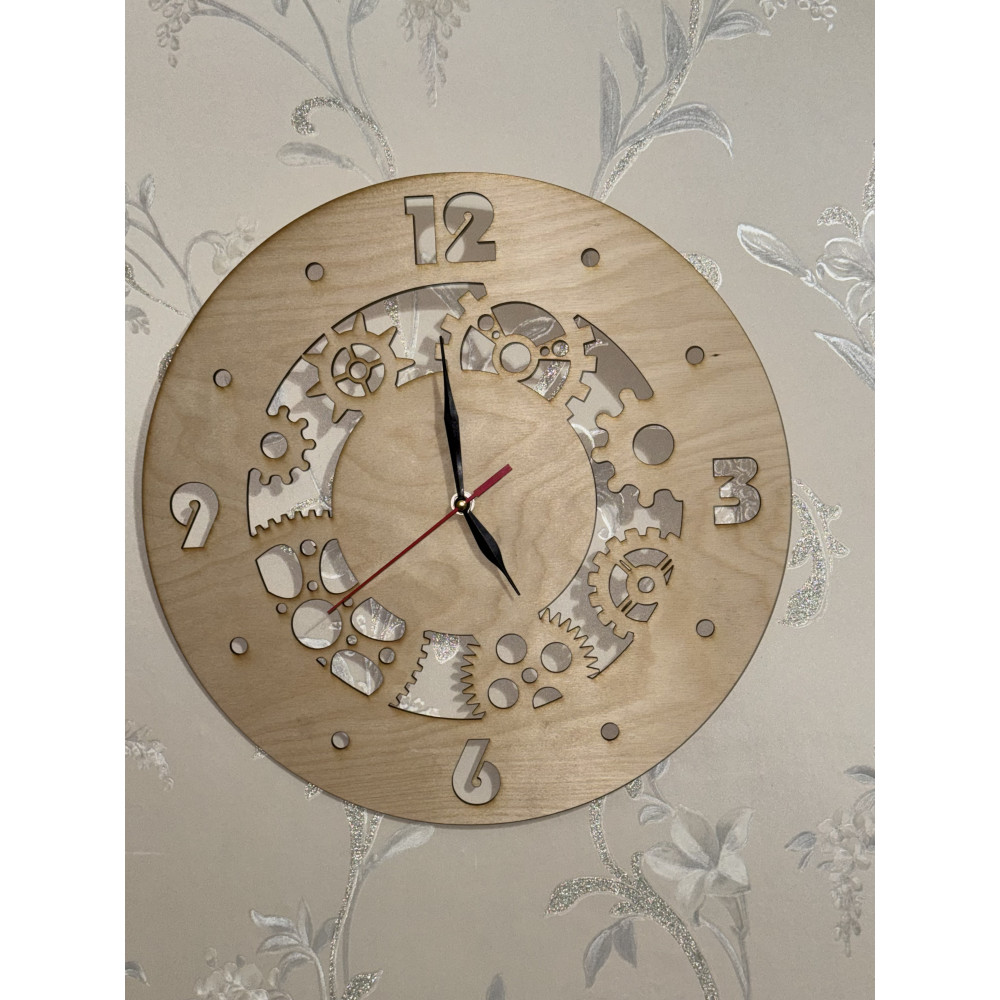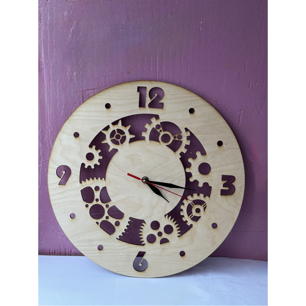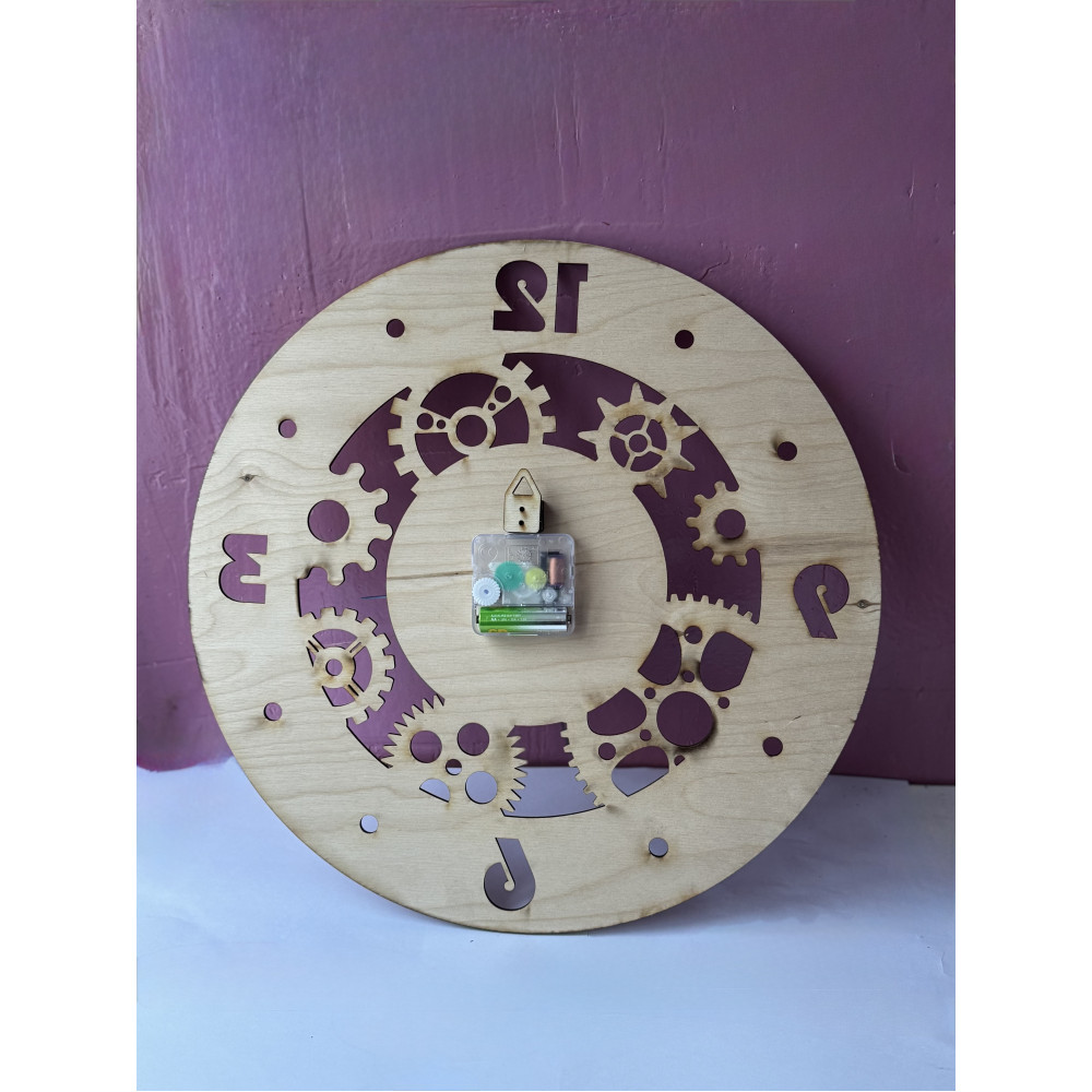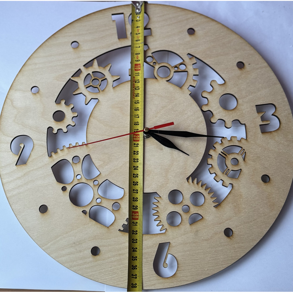 Часы, в которых время буквально просвечивает. Весь циферблат — это сложная инженерная композиция из сквозных, выпиленных насквозь шестерёнок. Каждая деталь — от центральной шестерни до самой мелкой — это филигранная работа мастера по дереву, создающая потрясающую игру света и тени.